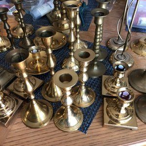 Lot of 30 vintage brass candlesticks for wedding table settings or home decor! All matched pairs of varying heights. All solid brass candlesticks. *All pairs sold individually as well, see other listings in my closet!*