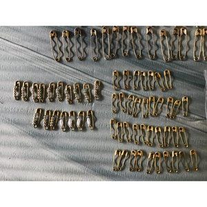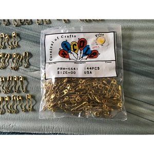 Lot of Vintage Gold Tone Safety Pins Some with Beads, 1.25”. + 5/8” L New . Some are used . There is Bag of 144 5/8”, 37 loose ones , 56 -1.25” size, and 13 5/8” with beads, 4 with pearls . Bag of 144 open but all intact.