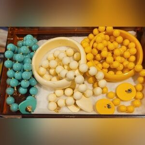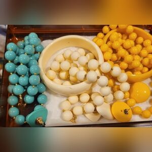 Benefits Charity! Lot of Vintage Jewelry! 3 beaded necklaces, 2 bangle bracelets & 3 pairs of earrings! Pre-owned.