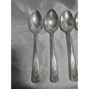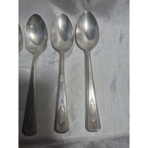 The product is a set of six Wm A Rogers A1 Plus silverplate dinner spoons from the Nuart pattern, made in 1932. These spoons are in the Art Deco style and are a charming addition to any antique or silver collection. With the brand's reputation for quality and the unique pattern design, these silverware pieces are sure to bring a touch of elegance to any dining table.