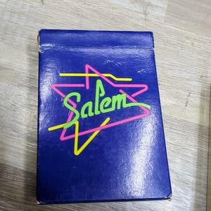 This lot includes five vintage decks of playing cards featuring popular cigarette brands like Marlboro and Salem. Each deck has its own unique design and style, making them perfect for collectors or anyone who loves playing cards. The decks include poker, blackjack, and more, and are in excellent shape for their age. This is a must-have collection for those who appreciate vintage playing cards and cigarette memorabilia.