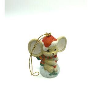 Lot of four Vintage ornaments mouse, Framed Santa, skating boy /girl mittens