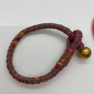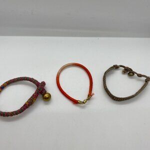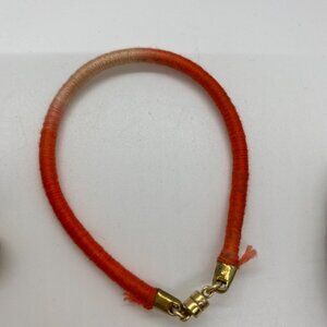 Lot of three bracelets - one leather with gold beads. one magnetic clasp orange thread, one multicolored fabric and thread. From anthropologie and Miraval resort.