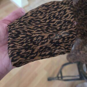 Beautiful shear Ted Baker blouse size 5 black and brown animal print. Buttons all down the front. It did have black tank to attached. I did remove it because it was giving me problems when I tried to put it on. 27 inches long. 26 inch long puff sleeves. 18 inches pit to pit.