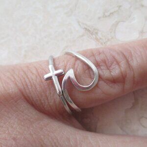 925 Sterling Silver Ring Size 5.75 - Lot of two stackable, dainty rings, one with a Cross and the other ring has a Concave & Convex design.