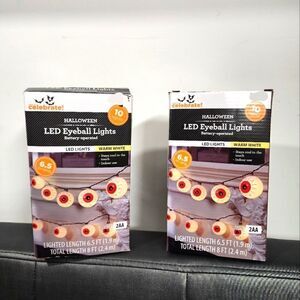 Lot of two Halloween 10-Count Battery Operated EyeballLights, w/Warm White LED
