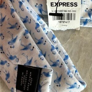 Lot of two Men’s White Express Tie‎ with Blue Flamingo Print 100% Cotton