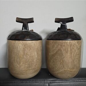 Lot of two Vintage Style Mango Wood Fall Acorn Tabletop Decor Box, New