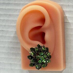 •vintage sparkling emerald green rhinestone silver tone flower shape clip on earrings