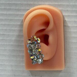 •vintage crystal kidney statement silver tone climber clip on earrings