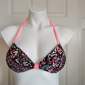 * Hot Water push-up bikini top, sz M, black/hot pink/white/teal