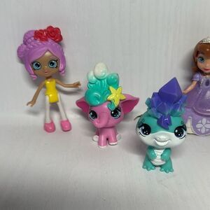 Lot of 7 Misc Mini Figurines 4 Littlest Pet Shop Frog, Pig, Elephant and I’m not sure what the blue one is cant find one on google search. Disney Sofia Shopkins Zuru Girl Doll with Green Hair and blue dress