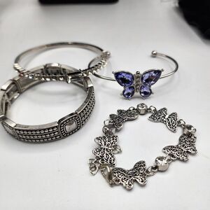 Lot of 4 silver Butterfly bangles & bracelets