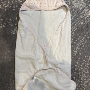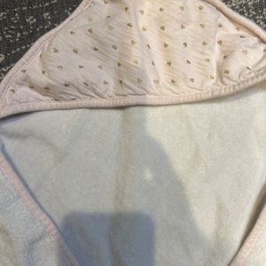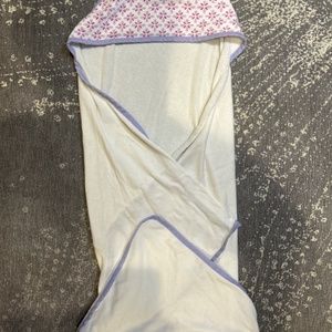 Lot of 2 hooded towels by Just Born & Luvable Friends. Pink & White “Just Born” towel 100% Cotton. Purple/White Towel 75%, 25% Polyester.