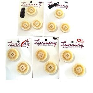 Lot 12 Lansing bone.colored plastic sew thru buttons new on cards-1”- 3/4”