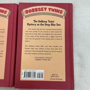 This lot includes two hardcover Bobbsey Twin books: #8 Big Adventure at Home, and #11 Mystery on the Deep Blue Sea; both are classic editions from 2004, printed in the USA.