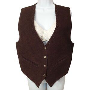 Lot(2) Mona Mode Suede Leather Vests Lady-L Pockets Lined Metal Snaps Brown Blac