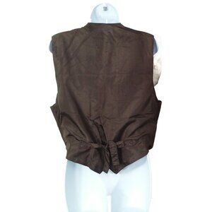 -- Mona Mode, women's - L (14), Lined Tailored Fitted, brown/black Suede pattern, polyester lining, four embossed metal snaps closure, 2-outer slash inset pockets, classic V-Neck with lashings, back tie belt, Dry Clean leather in dark black and brown colorway.