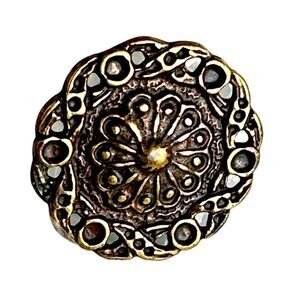 Lot 5 large 1.25” ox gold open work vintage buttons floral center shank back