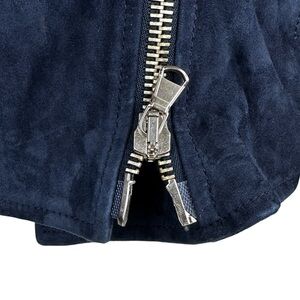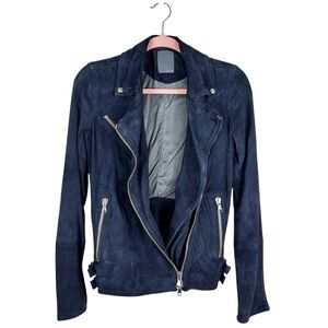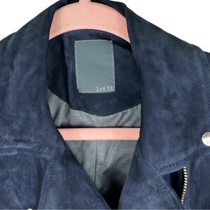 Lot78 Italian Leather Suede Moto Jacket in Navy Blue Size IT 38 (Best Fit 4-6)
