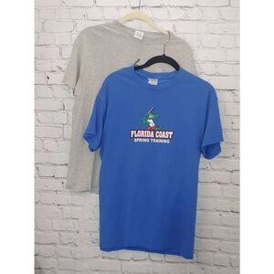 Lot Of 2 Gildan Men's Size Med Blue/Grey "FLORIDA COAST SPRING TRAINING" T-Shirt