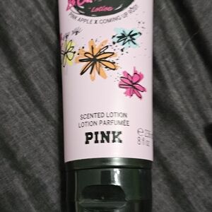 Pink brand body lotion and Bath and body works, champagne toast scent. Both are almost full.