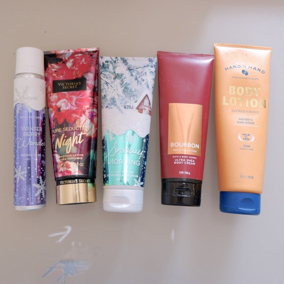 Some used and some barley used. There’s bath and body, Victoria’s Secret, and hand by hand.
