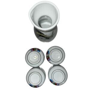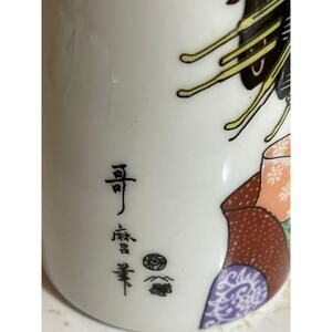 Geisha Sake Set Hand Painted Design Porcelain Pottery Traditional Ceramic Cups carafe: 6.75” x 2.25”