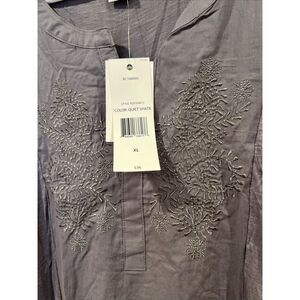 Includes 2 tops one chambray blue and one gray. Material is rayon with stretch measures armpit to armpit 24” shoulder to front hem 29” shoulder to back hem 33”.