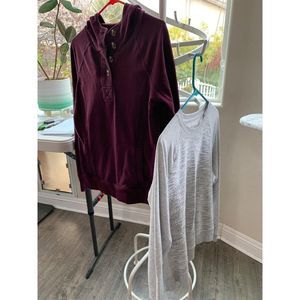 • Both sweatshirts are pullover, size Medioum, Cotton blend, measuring pit to pit 19 and length 25, raglan sleeves.