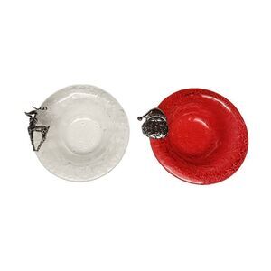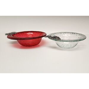 Lots of 2 Christmas Santa & Reindeer Glass dish with Santa 6.5”
