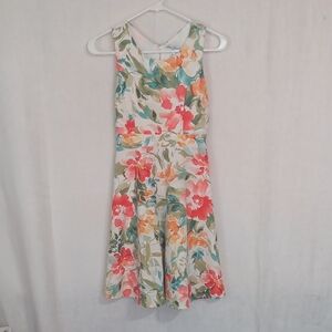 Lots of Love White Orange Floral Fit and Flare Dress Size Girl's 16
