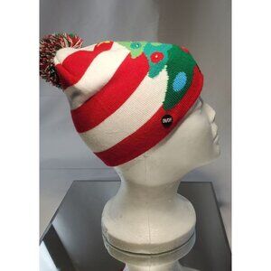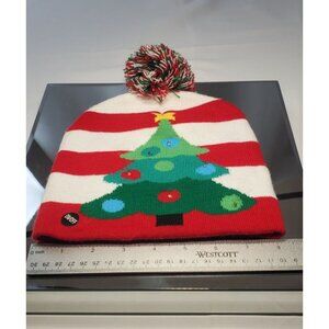 Lotsa Lites Flashing Pom Pom Beanie Hat Knitted Holiday Christmas Tree Design