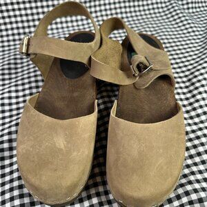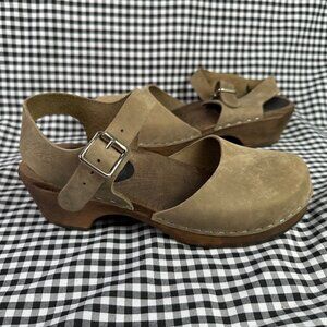 Lotta From Stokholm Low Taupe Leather Swedish Wooden CLogs EU 36 / US 6