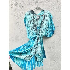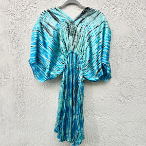 Lotta Stensson 100% Silk Printed Cinched Waist Mini Dress Blue Women's Small