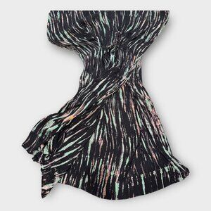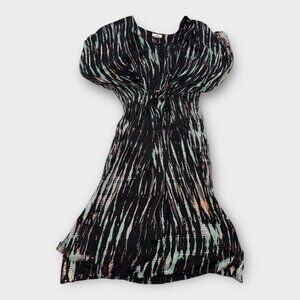 Gorgeous 100% silk caftan from Lotta Stensson. Adjustable, drawstring waist. One size fits all, literally can be worn from small to Large. I am 5"7 and this hit me at my ankles, if that is helpful. Super soft, perfect poolside or beach coverup. Really pretty almost scale-like design on black silk.