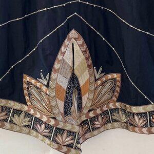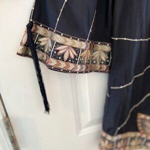 Tassel detail , silk/cotton blend, lined , embroidered , sequined , oriental style , Asian style , asymmetrical hem