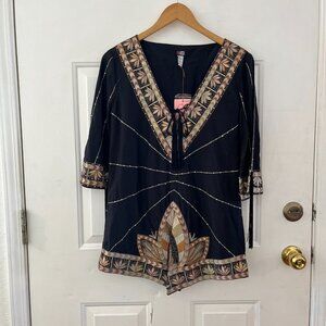 Lotta Stensson New York Sequin Beaded Embroider Tassel Silk Black Tunic Sz Sm