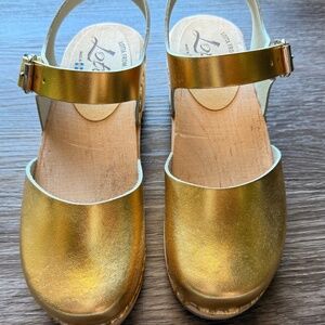 This gold clog sandal is no longer available on their website. I bought them hoping they would fit and they are too big so reselling. NEVER WORN! New without box.