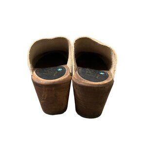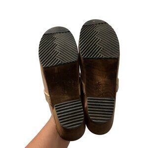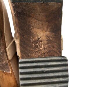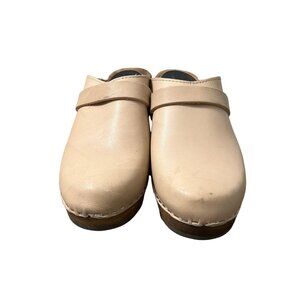 Lottas Sweden Beige Leather Slip On Clog Wooden Heels Size 9 EU39