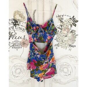 This Lottie & Holly two-piece outfit is perfect for any casual or travel occasion. The set includes a sleeveless crop top with a sweetheart neckline and an elastic waist skort with adjustable straps. The floral pattern and multicolor design give a bohemian and tropical vibe, making it a great choice for a beach day or outdoor activity.