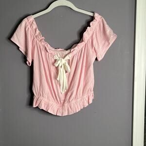 Lottie Moss Pink and White Gingham Print Off Shoulder Top White Bow Size Medium