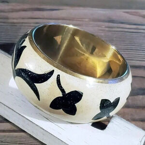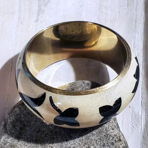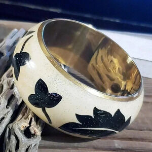 Lotus Flower Mindfulness Zen Artsy India Enamel Black Cream Bangle Bracelet
