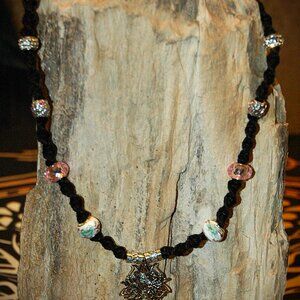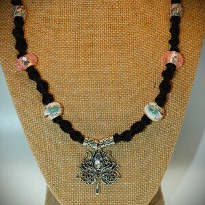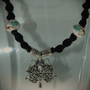 The Lotus Flower with Blue Flower Accent Beads on a 21 1/2" Handmade Black Hemp Necklace by Knotty Girl Hemp Jewelry & Art is a unique and beautifully crafted piece of pendant jewelry. The necklace features a delicate flower pendant and blue flower accent beads, adding a touch of nature-inspired beauty to any outfit. Made with high-quality hemp material, this bohemian-style necklace is perfect for those who appreciate handmade artistry and healing properties. Ideal for those who love flower-themed accessories and a touch of bohemian flair in their jewelry collection.