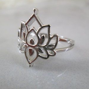 Gorgeous 925 sterling silver LOTUS Flower ring. Nice detailing, well made. Beautiful open silver work design. Face height = 15mm. Non tarnish. Stamped 925. Various sizes available in dropdown.