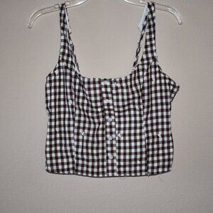 Lotus & Lavender Junior Brown Gingham Adj Strap Smocked Back Embroider Top Sz L