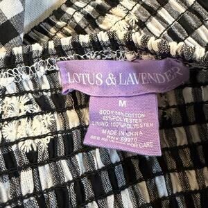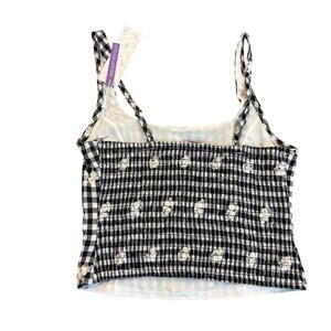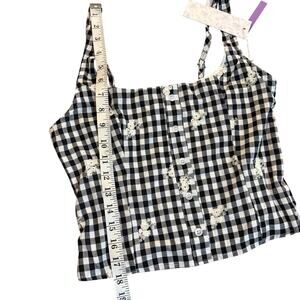Lotus & Lavender TanK Top M Black White Gingham Floral Button Front Crop