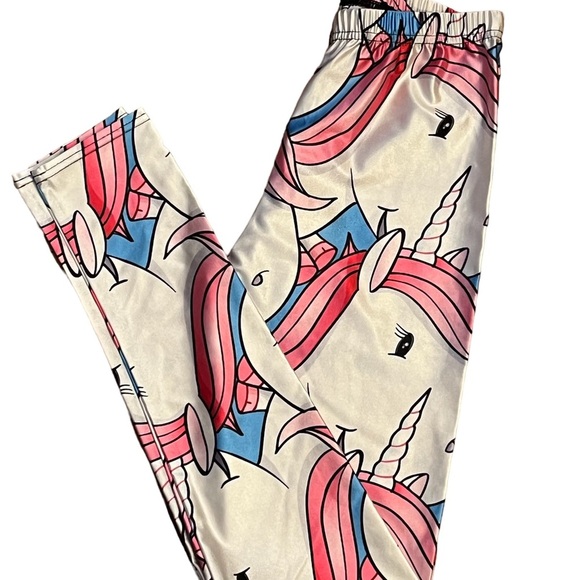 NWOT Lotus leggings UNICORNS, light blue, pink, white. Tag states a size medium but they seem to run small to me. Please use measurements below to make your decision.