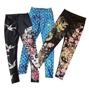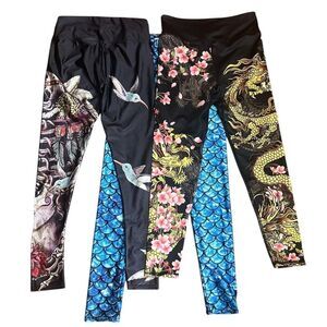 Lotus Leggings 3pc Lot Small/Medium Goth Dragon Graphic Floral S/M