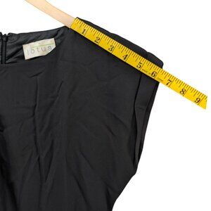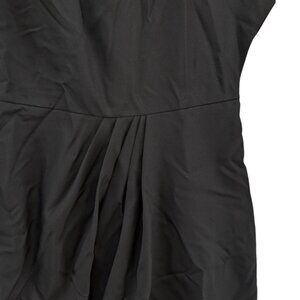 Lotus Ruched Mini Dress Black Beaded Neck Cap Sleeve Pleated Size L